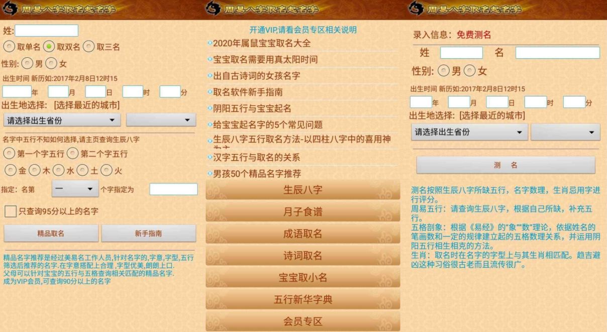 内含姓名分析、专业起名,宝宝起名,测名等等超强功能。取名方法多样化,