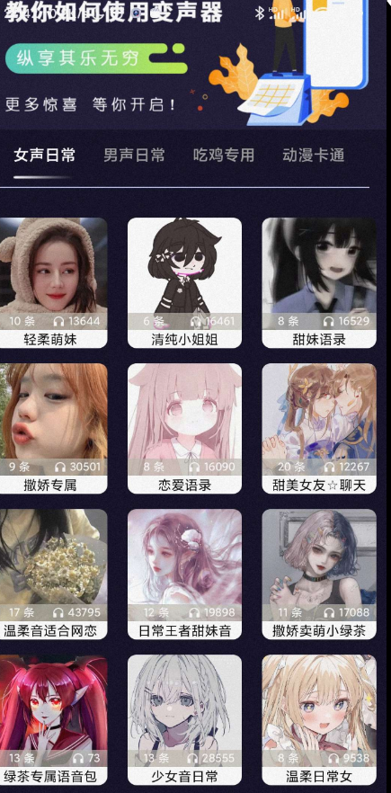 汇集多款热门游戏语音包。连主播都在用,各种搞笑的、创意的、模仿的、幽默的、有趣的音频应有尽有,每天让你捧腹大笑