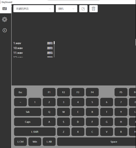 这款工具是一款让键盘发出声音的软件。软件内置了“老婆声音”、“野兽先辈”、“钢琴块”和“鸡你太美”这四种声音。