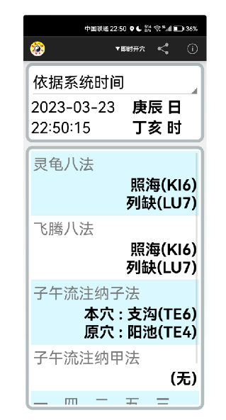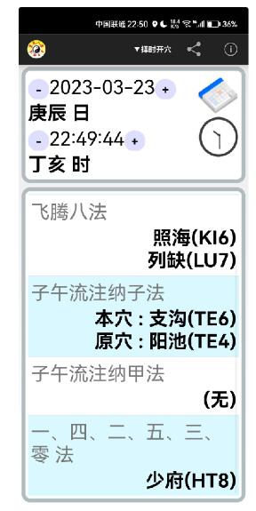 【软件介绍】:本软体的功能包括灵龟八法、飞腾八法、子午流注纳子法及子午流注纳甲法的即时和择时开穴。