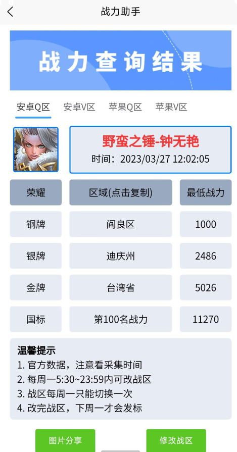【官方介绍】:该软件是一款王者查询英雄战力工具,简单好用