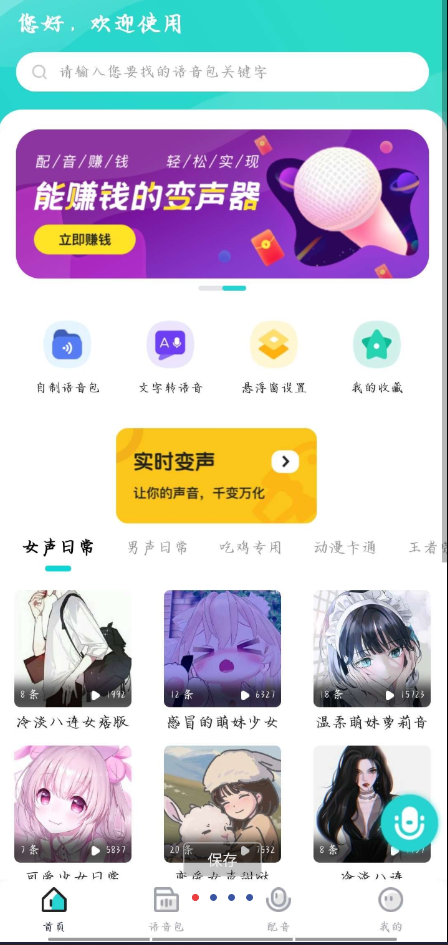 魔音变声器青春版2.1超多变声素材,海量精品语音包实时变声