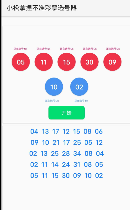 这是一个彩票随机选号器,如果你买彩票时不想让老板的机器随机打,而自己又拿捏不准,这款东西就能帮你解决,在你选号拿捏不准时你可以参考你手机随机选取的号码!