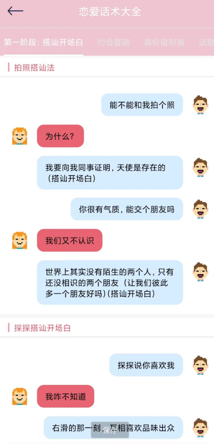 官方介绍:一款帮助广大宅男朋友迅速脱单的交友神器。海量的话术库随时为你更新,提供一个自我认识、长相进而在相亲恋爱中成就全新氛围,在对自己有信心的话题内容和老师下一刻就可以发言了,还有教程哦。