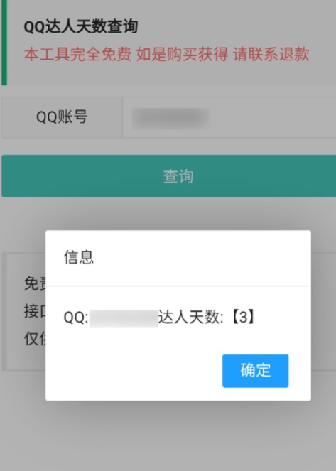 应用介绍: 免密查QQ达人天数 任意QQ号无需密码和权限
