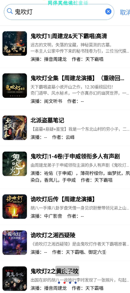 鲨鱼听书 可以搜索各种类型的小说或有声资源,例如悬疑小说或相声等