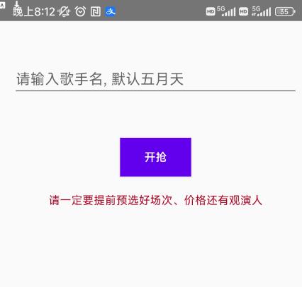 【资源介绍】:一款为大麦抢票而研发的app(由于走的不是网络脚本,不保证一定能抢到)