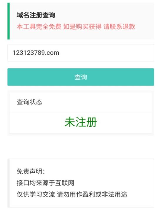 应用介绍: 一键查询域名是否被注册 抢注必备