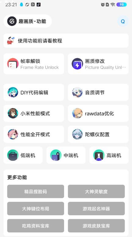 应用介绍: 一款能修改和平画质的软件,有了它在也不害怕自己画质不好看了