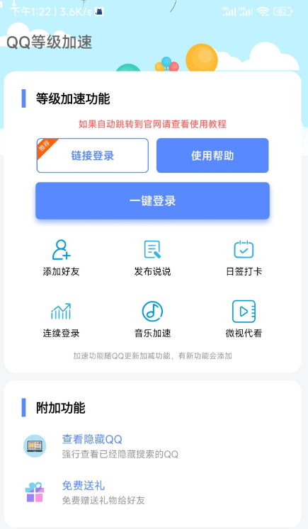 一个聚合QQ等级加速,免费送礼,强查隐藏QQ等功能的软件