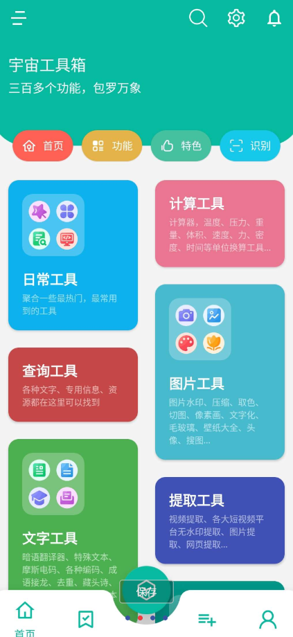 宇宙工作箱1.6包含了300百多个实用工具,支持日常工具、系统工具、图片工具、提取工具、开发工具等,能兼具实用、娱乐、工具为一体
