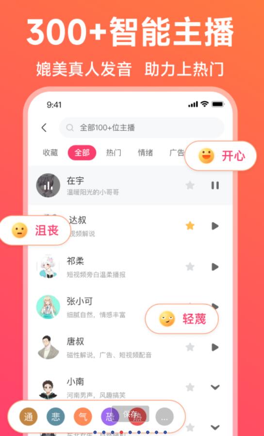 配音神器是一款专注于文字转语音的智能语音合成软件,采用强大的语音合成技术,打造简单高效的配音服务平台。更有众多真人广告促销成品录音,一键导出。满足您的配音需求。