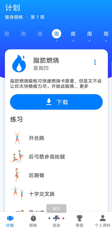 根据自己设定的时间设置,每天一个七分钟的锻炼,有全身锻炼,普拉提,核心等等每个项目都有3d动画指导,还可以根据自己情况针对性选择锻炼部位
