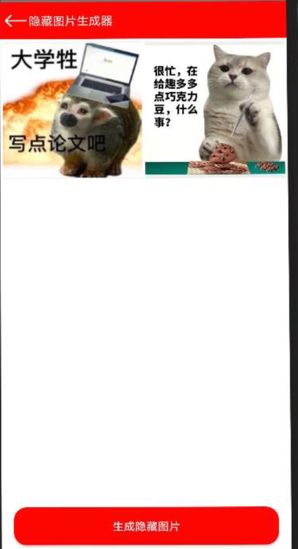 首页 > 软件仓库 > 隐藏图片生成器1.0比如是个妹子,别人一点开变了成骂人的表情包,非常的有意思