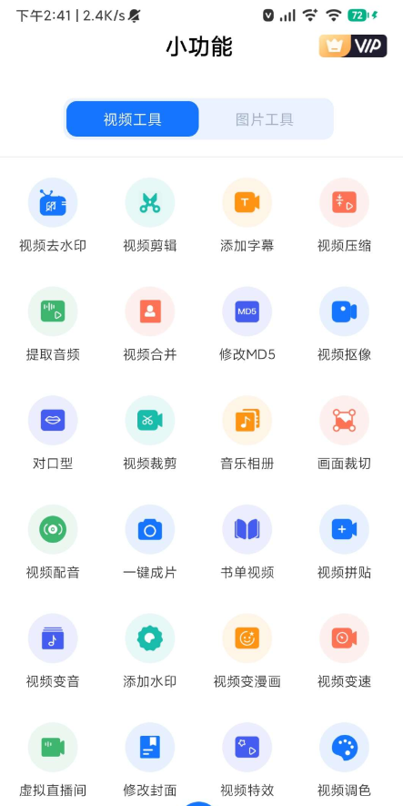 产品内置了视频剪辑、视频压缩、视频去水印和添加字幕的功能。