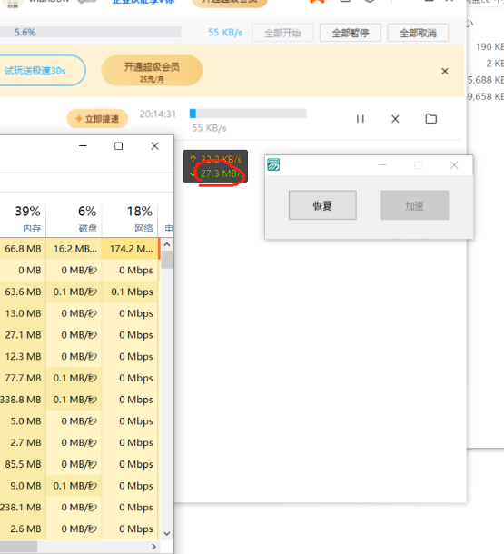 实时下载速度无视,会显示几s几k,但是实时网速是非常快的,可以在任务管理器查看