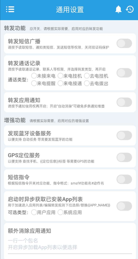 短信转发器2.0可以将它用来监控Android手机短信、来电、APP通知,并根据指定规则转发到其他手机