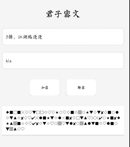 君子密文app输入内容和密钥加密或解密