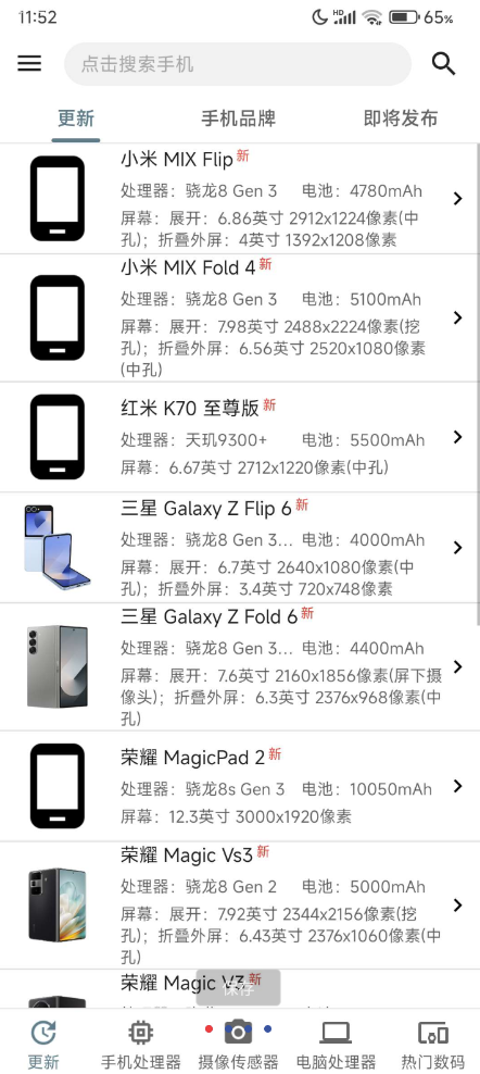 【软件介绍】收集了手机官方网站的主要参数,和前后多个摄像头型号等各种参数手机比对神器处理器跑分数据来自geekbeach 国外的跑分软件软件没有手机排行功能只有手机数据和手机端、电脑端处理器跑分数据 无单个机型跑分数据 分数仅供参考