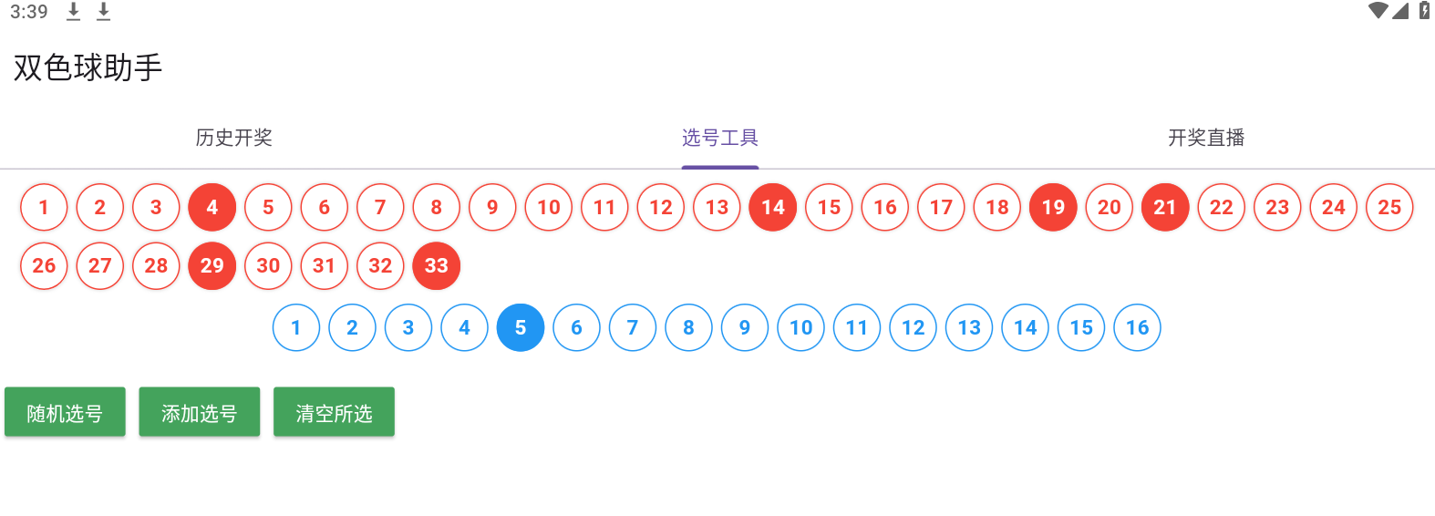 开发目的:目前看开奖,需要去网页、或者需要打开app查看等等。有的还有广告体验很不好!主要是慢!(本人也极致喜欢简洁!)因此使用flutter开发了一款能快速查看开奖信息的app,开屏就能看结果。仅1秒。还可以实时看开奖直播,更加快速的拿到第一手开奖结果。这是本软件的主要功能! 至于选号,格外做的吧,就是让你直观看到自己选的号。可以本人一个一个点。也可以随机选,随机完也可以看见不满意的号,手动更换然后点击添加选号,会放入下方列表。清空所选是清空上方点击状态的,不是清空下方列表。