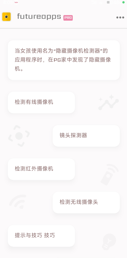 【软件介绍】 经常住酒店,可能会遇到不正规的酒店有隐藏摄像头,这款APP有以下几个优点: