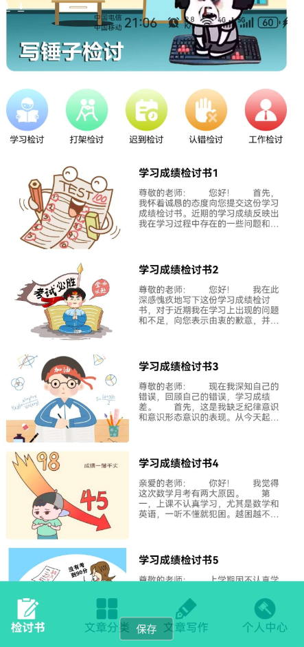 写锤子检讨 一款很强大的检讨书模板工具,帮助用户生成自己需要的检讨书,为你提供超多不同类型的模板,根据自己的需求在线进行检讨书生成,为你带来优质的服务。