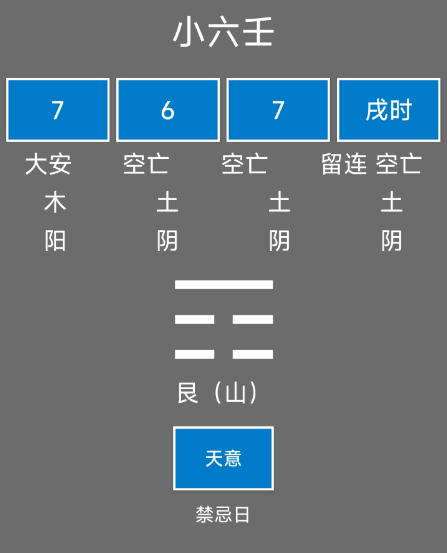 【应用说明】遇事不觉卜一卦 小六壬算卦 六壬卜卦是一款免费易用的六线占卜软件。六壬卜卦提供多种占卜方式。您可以根据自己的兴趣选择合适的占卜方法。您可以随时在线输入数字进行占卜。