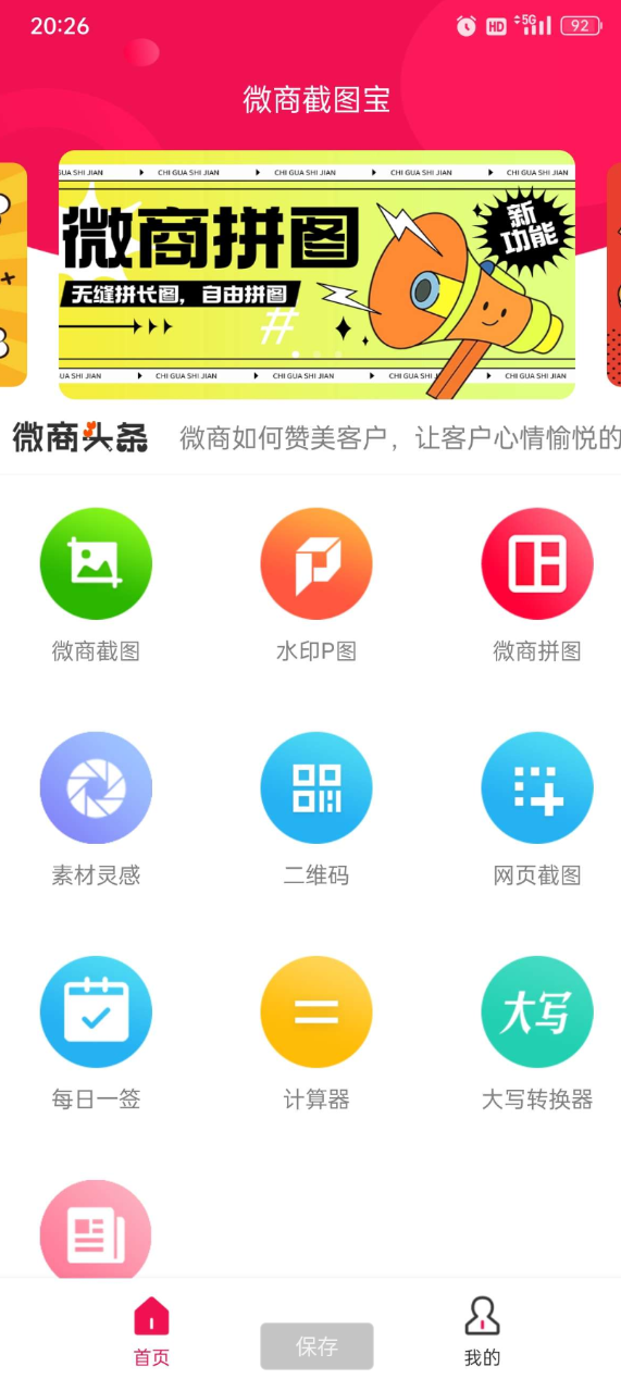 【官方介绍】:微商截图宝,针对微商打造朋友圈营销,作图做视频和素材下发的一站式工具。致力于打造微商所需要的营销素材编辑功能,专业、强大,是微商必备的工具APP,现在已经广泛应用于各行各业的私域素材运营。 主要功能特色: 水印P图:批量添加水印。支持在线模板,相册上传水印。支持添加文字水印、标签、贴纸、圈框画笔、突显效果、滤镜、剪裁,以及对上传的照片进行自由裁切和抠图、内置了多种滤镜和特效,打造出独具个性的产品展示图! 海报模板:分分钟设计出自己的海报,只需修改图片和文字,海报主题针对微商经营场景设计,支持添加图片抠图、翻转照片、预设一些常用的截图模板,方便用户快速生成美观的截图。 素材转发:让用户能够轻松地将APP内的各类素材,如产品图片、宣传文案、成功案例等,一键转发至其他社交平台或聊天工具,将为用户带来更加便捷、高效的素材分享体验。 此外,我们根据用户反馈和市场需求进行迭代更新,加入更多实用功能,优化用户体验。无论是产品推广、经验分享还是团队协作,微商截图宝都能为用户提供强大的支持。 微商截图宝凭借其强大的截图编辑功能、优秀的用户体验以及便捷的素材转发功能,成为了微商们不可或缺的营销利器,更多功能等你来解锁。 更多功能,敬请期待~ 喜欢请推荐给你的小伙伴! 微商截图宝2024
