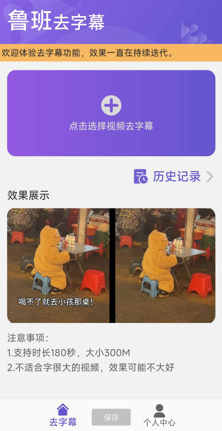 【应 用 名 称】:鲁班去字幕