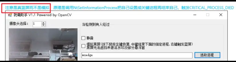 一款名为防窥助手的屏幕隐私保护软件。该软件给用户带来全新的屏幕隐私防护体验。它具有独特的运行原理,借助摄像头和帧差异技术探测周边运动物体,保障屏幕信息安全。软件使用便捷,是绿色版,双击特定程序即可打开。使用前要留意界面提示信息,如有人经过屏幕自动黑屏,不同鼠标按键有不同功能。从实际测试效果看,默认对特定区域检测,有物体进入监测范围屏幕迅速变黑。