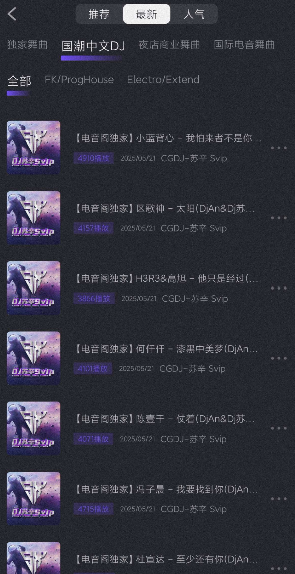 【软件介绍】“电音阁DJ”是一款专注电音的软件。它拥有海量电音曲目,涵盖多种风格如浩室、 trance 等。界面设计简洁,方便用户快速查找和播放喜欢的电音。具备混音等基础功能,让用户能简单创作个性电音作品,是电音爱好者享受和探索电音世界的好帮手。