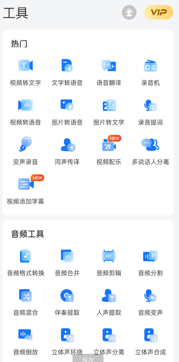 内置了多种实用小功能,如:文字配音、文字提取、视频转文字、音频编辑处理和录音提词器等。