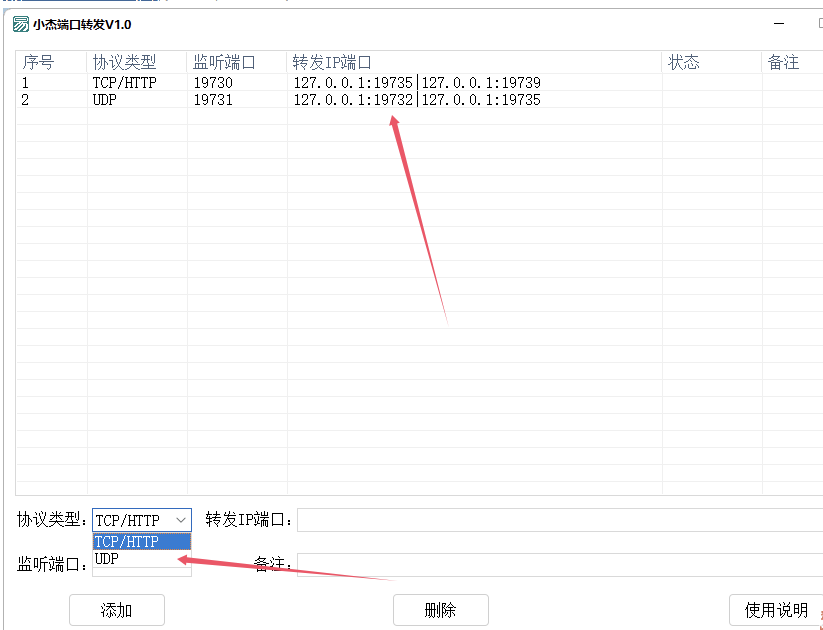 基于HP_Socket开发 支持转发 多个IP端口 论坛好像没人开发这种吧 我没太注意 刚写出来 大家可以测试测试 协议类型 TCP/HTTP UDP