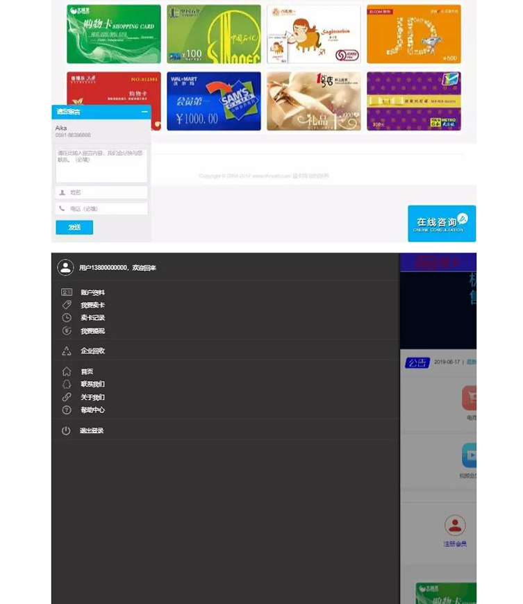 2021最新百分百储值卡回收网站完整源码/代金卡/加油卡寄售代码/带手机模板