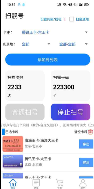 扫靓号2.0一款可以扫描腾讯大王卡,阿里大宝卡,米粉,歪卡等的APP