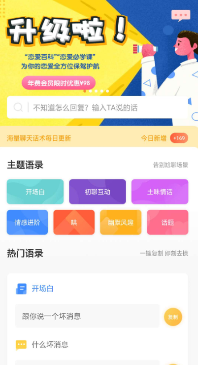 恋爱攻略2.0恋爱脱单的手机软件让聊天变得更加的简单,轻松告别直男癌