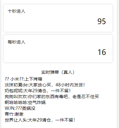 2、记录直播弹幕、下单、进人速度、带货等数据