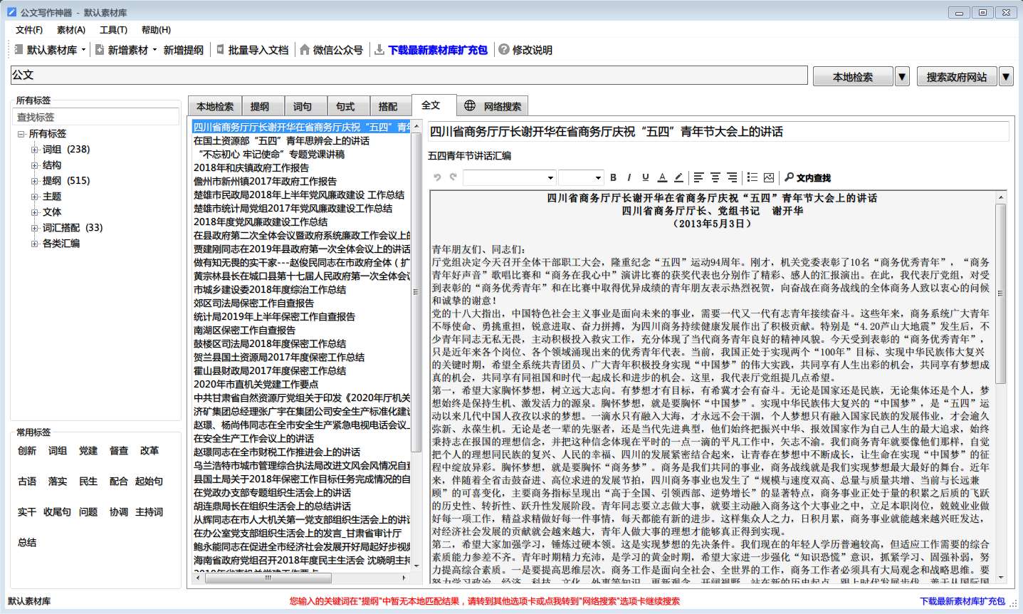 首页 > 软件仓库 > 公文写作神器软件提供了范文、提纲、金句查询等功能