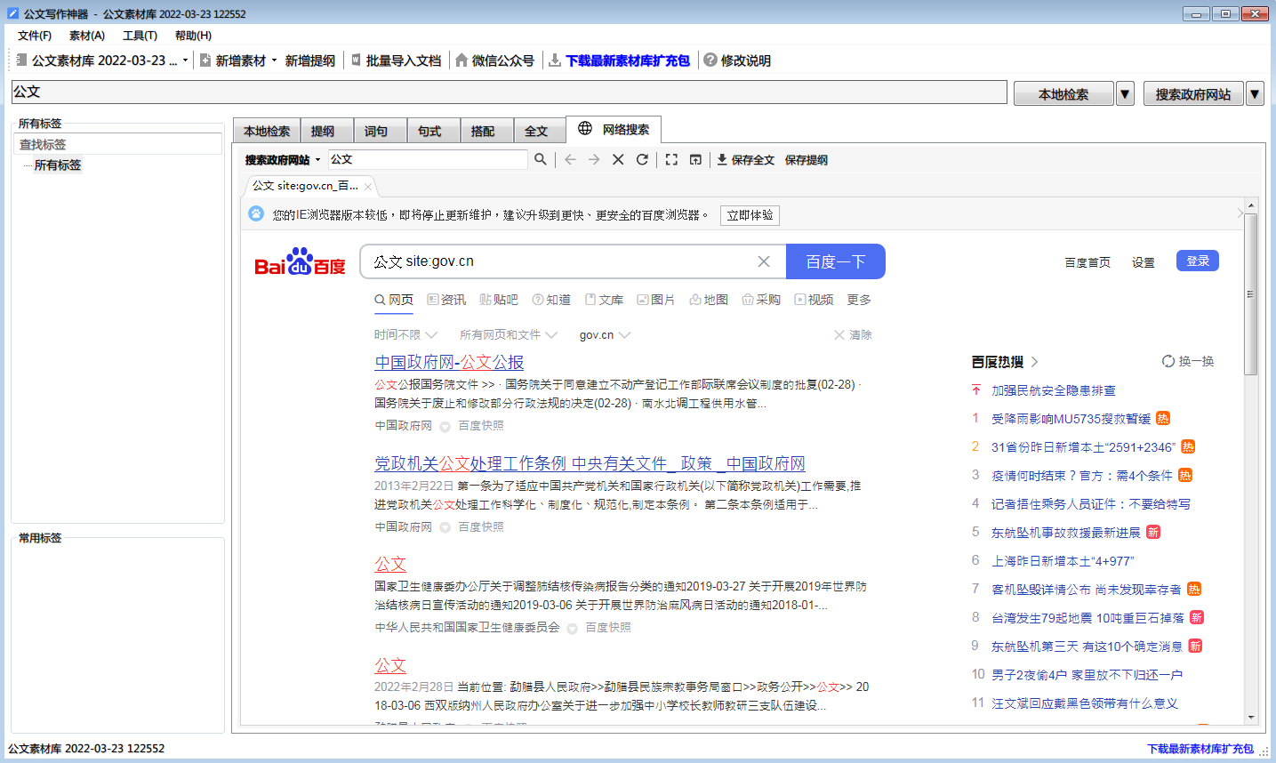 公文写作神器软件提供了范文、提纲、金句查询等功能