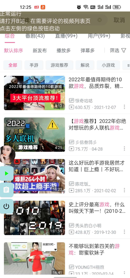 1.开始运行前,(B站)APP要在视频列表界面[灯泡]