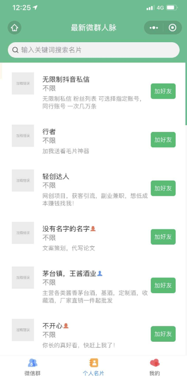 2、通过人脉广场,将商家信息通过名片进行展示,让资源对接、人脉推广更加便捷高效。为平台带来更多流量,让平台更有价值。
